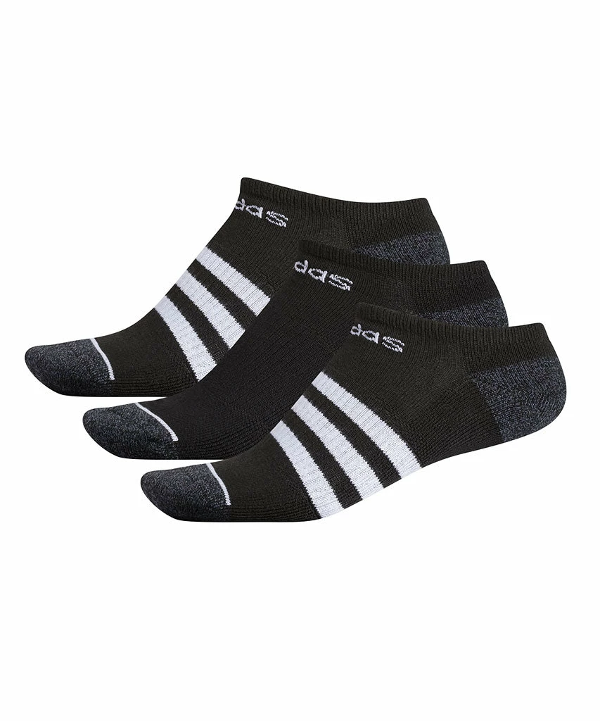 ADIDAS ADULT ADULT 3 STRIPE NO SHOW SOCKS – 3 PACK BLACK