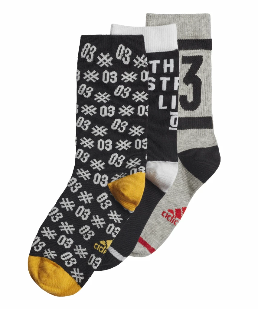 ADIDAS KID’S YA GREW SOCKS – 3 PACK BLACK/GREY/GOLD