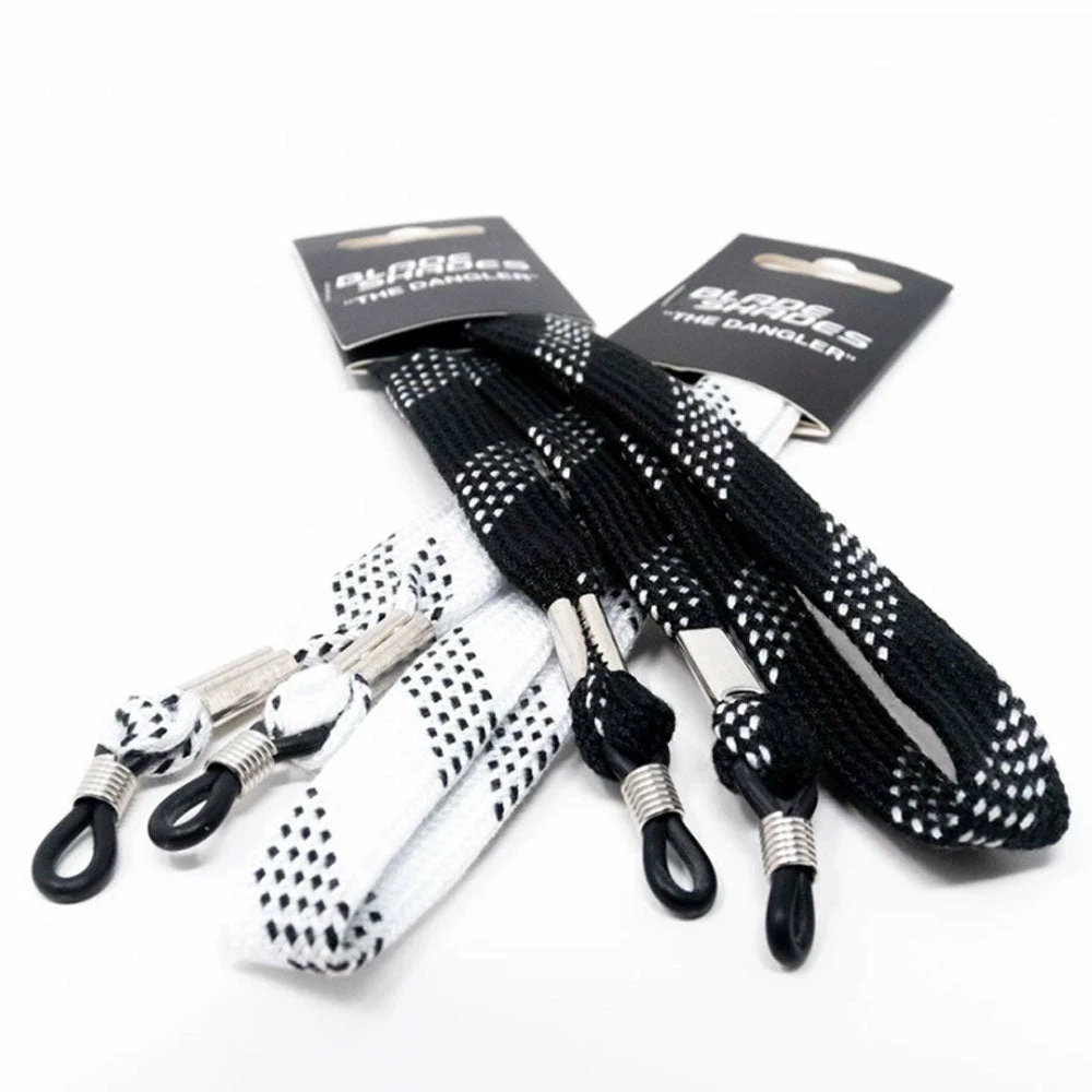 The Dangler, official neck strap for Blade Shades. This practical neck strap is essential to keep your sunglasses in place everywhere you go. Excellent for any pickup game, ODR, and everyday use. Perfect as a gift or to show your love for hockey. Actual hockey lace in both black and white. Sunglasses not included.